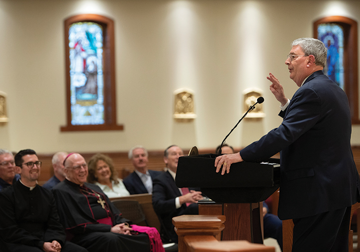 • Benedictine College in Atchison honored Archbishop Naumann with its Transforming Culture in America Award on April 1 at Sacred Heart of Jesus Parish in Shawnee. Author George Weigel spoke at the event.
