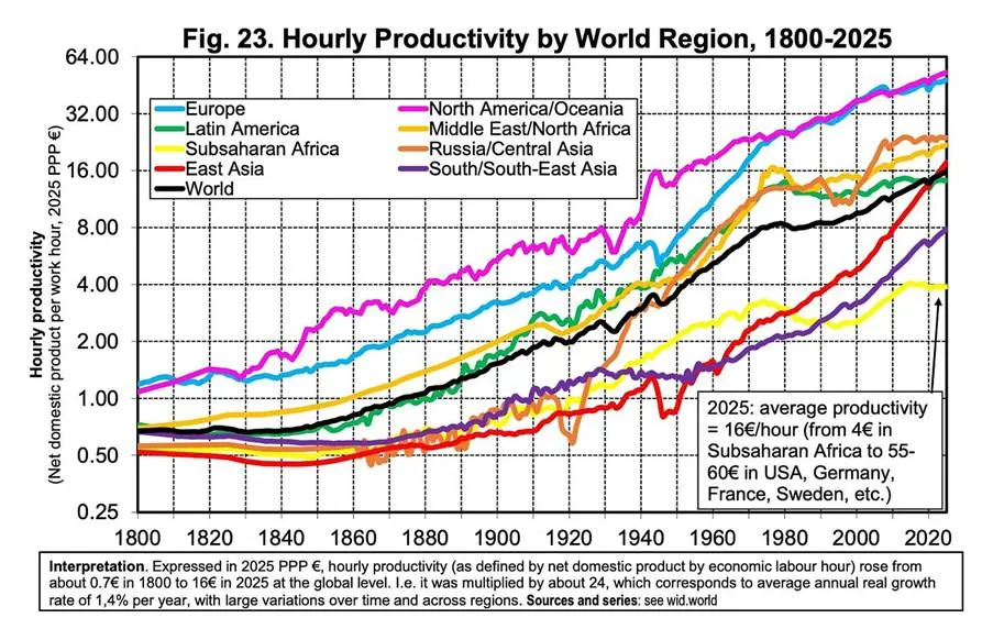 In both cases, workers produce an average of €60 per hour worked, according to the most recent data from the World Inequality Lab.
