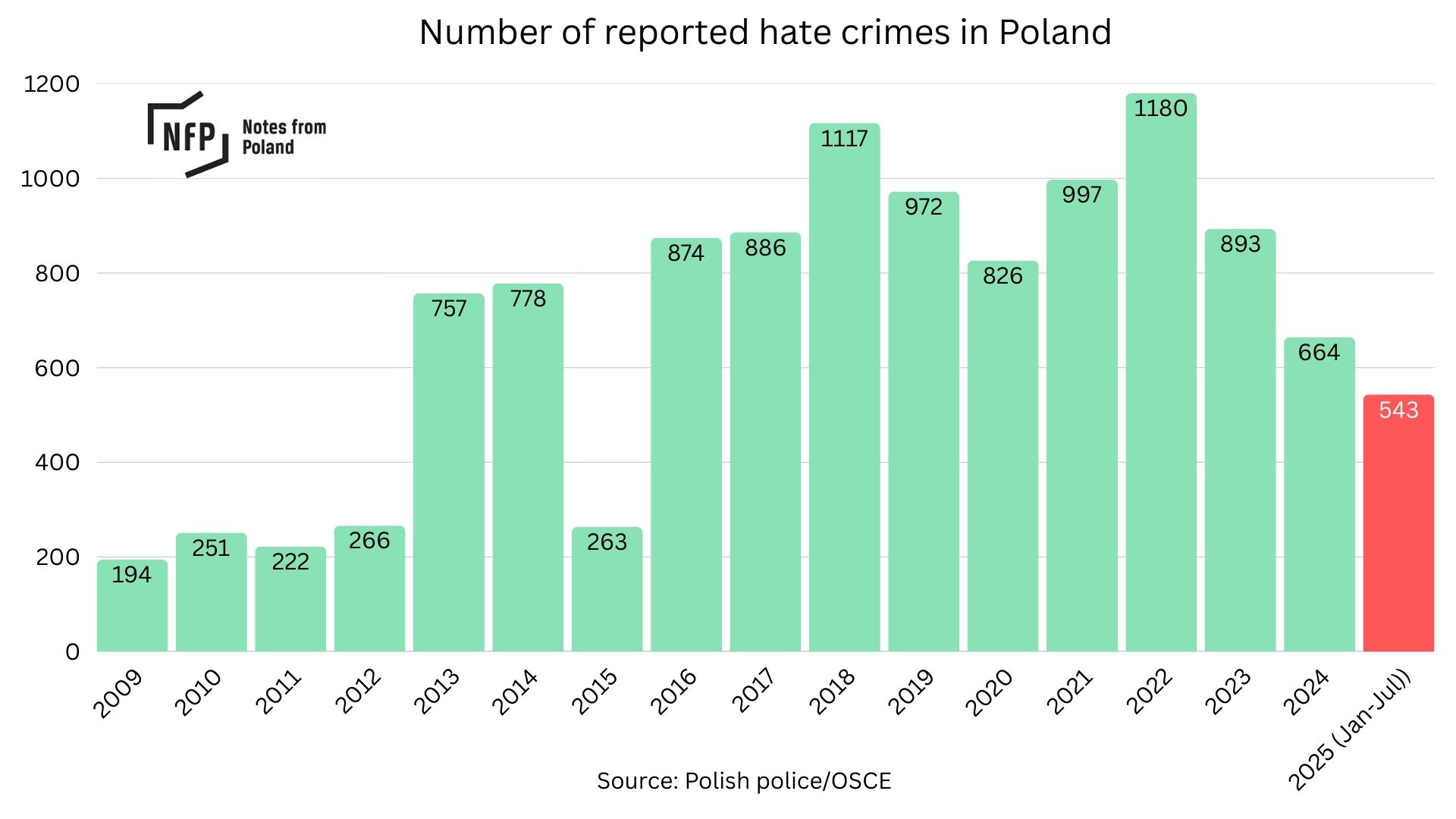 Data for the rest of 2025 are not yet available, but the figures from the first seven months of the year suggest that Poland was on track to have one of the highest annual numbers of reported hate crimes on record.