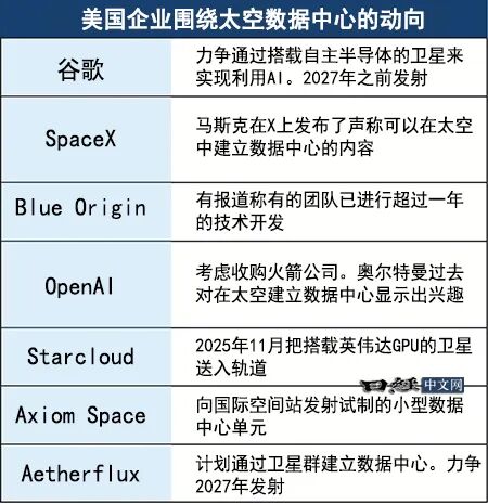 The background for the attention on space data centers is that building a large number of data centers on the ground will lead to power shortages.