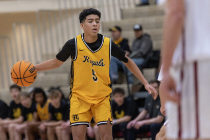 Roy High’s Boston Greenhalgh surveys the court against Northridge in a region game Saturday, Jan. 3, 2026, in Layton.