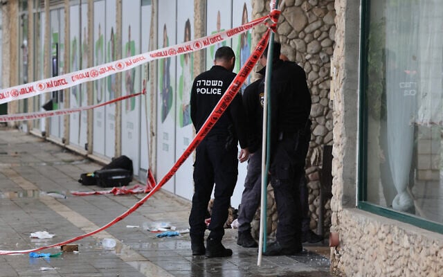 Israeli police check the scene of a deadly terror stabbing attack in Herzliya, north of Tel Aviv, on December 27, 2024. (Jack GUEZ / AFP)