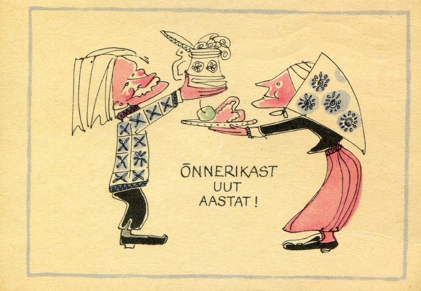 A Soviet-era Estonian New Year’s card from 1961. Artist: Hugo Mitt.A Soviet-era Estonian New Year’s card from 1961. Artist: Hugo Mitt.