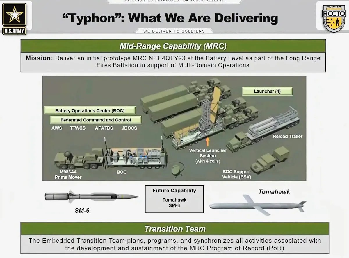A U.S. Army briefing slide providing an overview of the components of the Typhon weapon system. U.S. Army