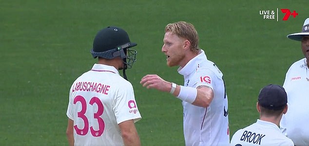 Stokes also appeared to tell Labuschagne to ‘shut the f*** up’ when the Aussie batsman began to talk back.