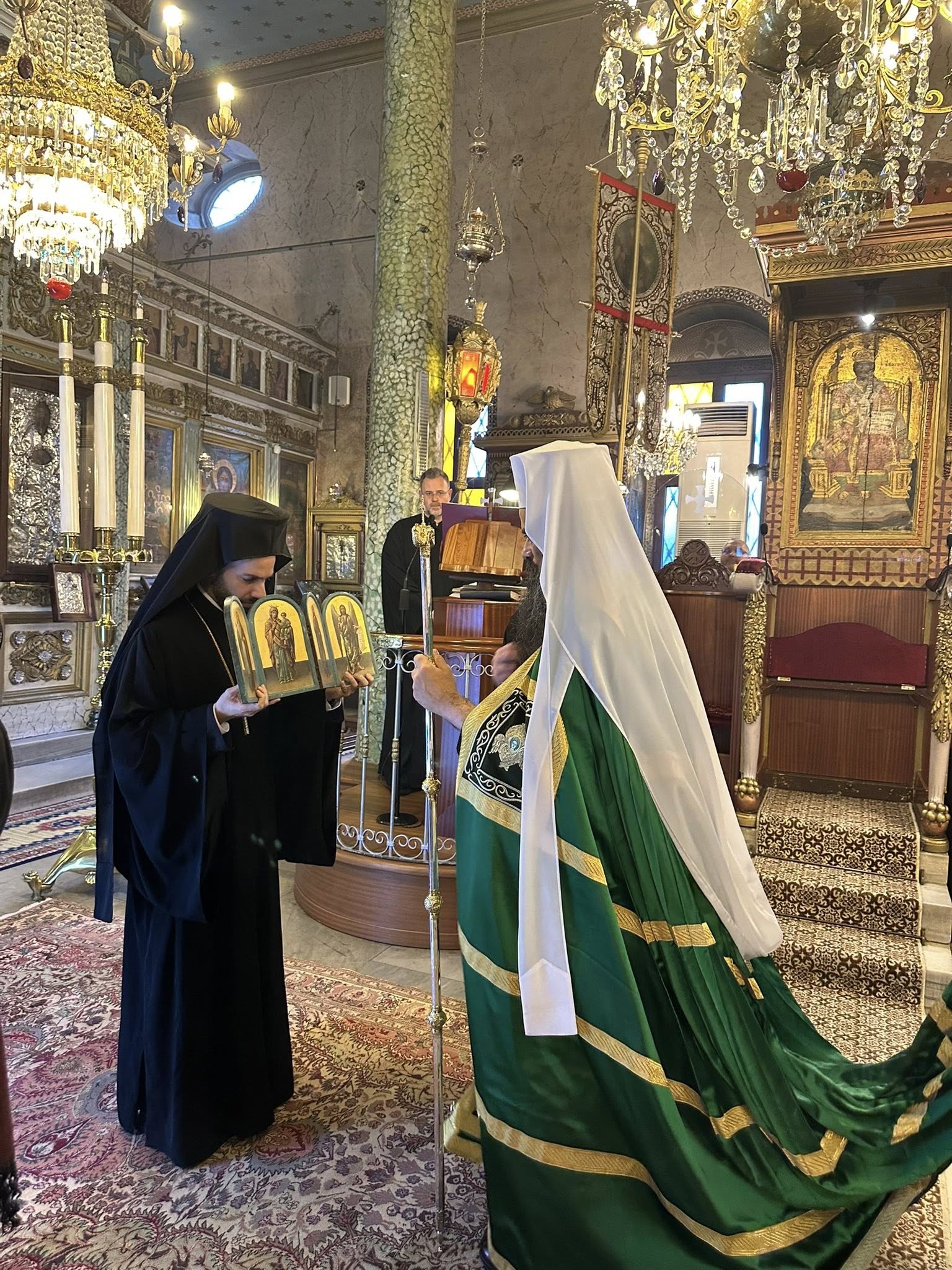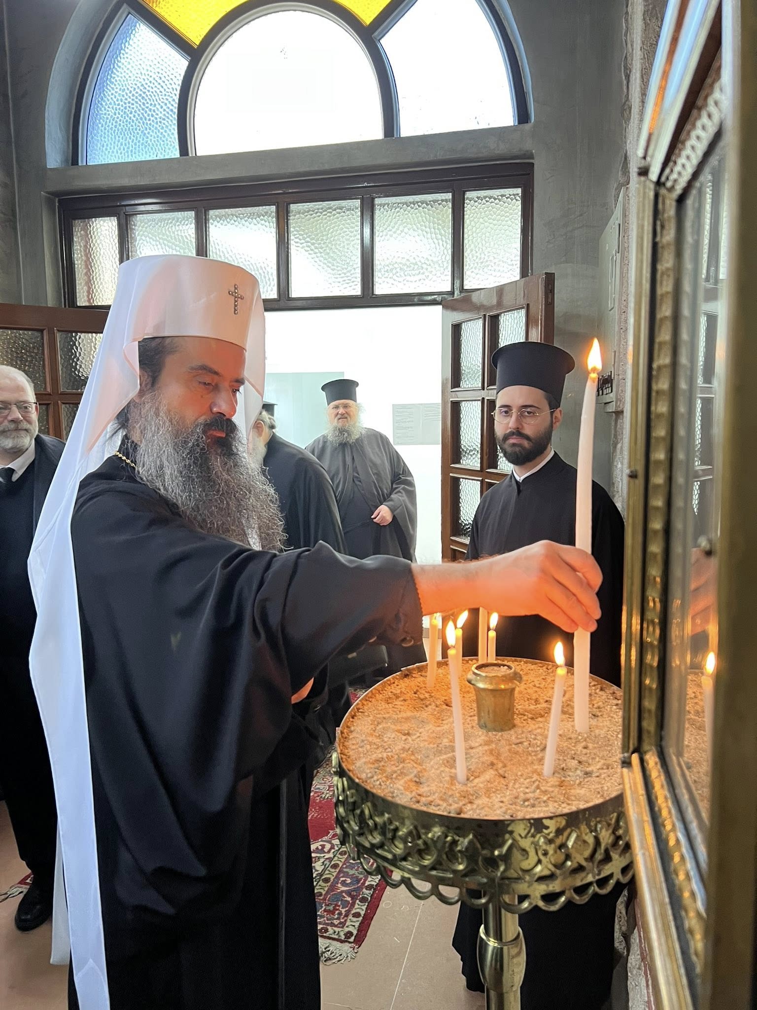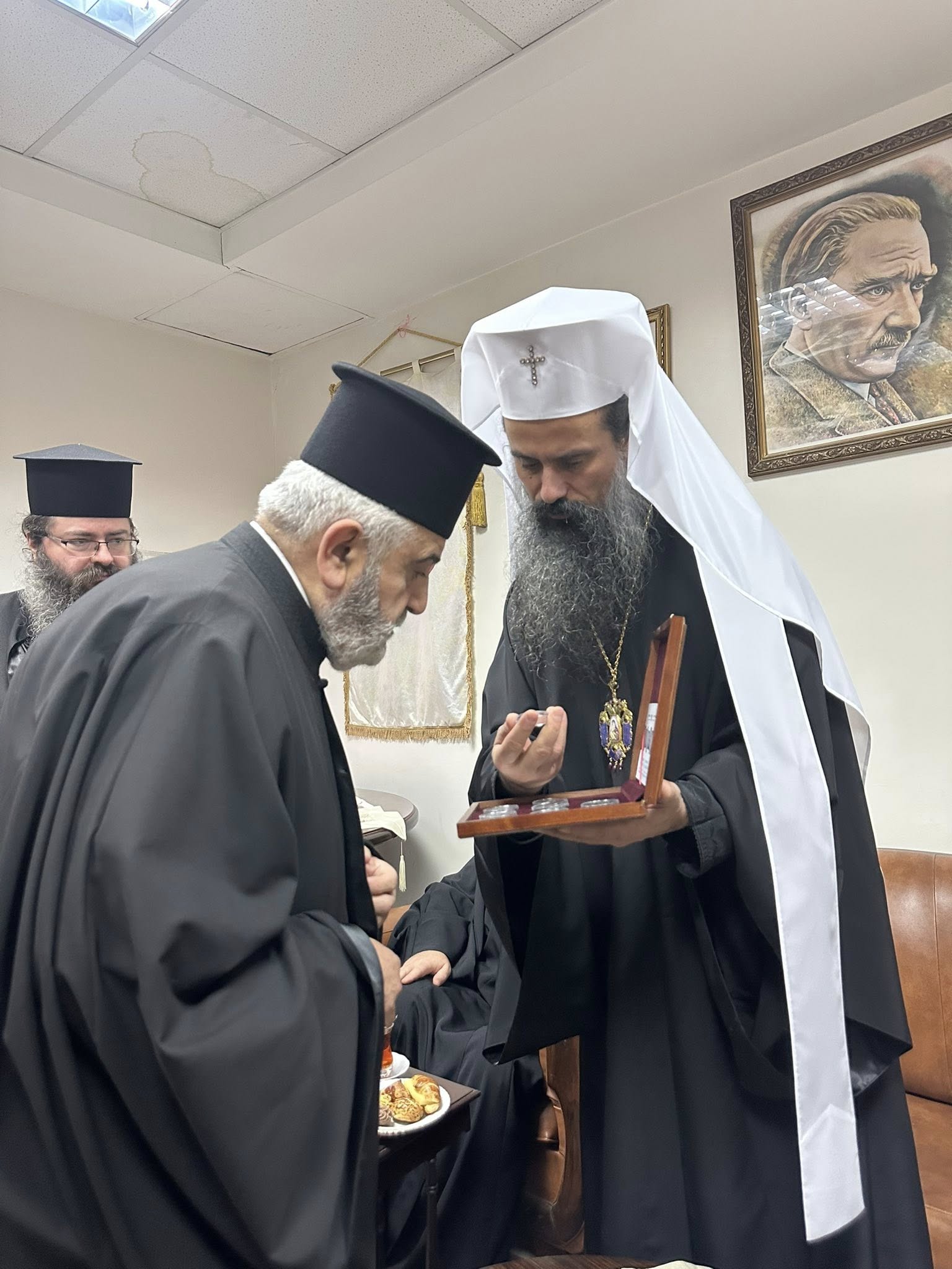 The Metropolitan then presented the Patriarch of Bulgaria with a silver tray bearing the inscription: “In commemoration of your visit to the Church of Saint Stephen in Yeşilköy, Holy Metropolis of Derkoi, December 28, 2025. + Apostolos of Derkoi.”