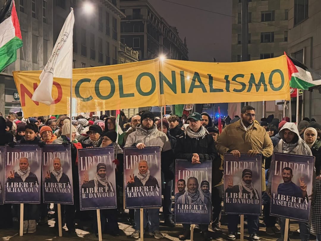 In the wake of the Italian government’s attack on the Palestinian community and Palestine solidarity movement in the country, in which it arrested seven Palestinian activists and leaders, including Mohammed Hannoun, the president of the Associazione dei Palestinesi in Italia(API, Association of Palestinians in Italy), protests have grown against the so-called “Operation Domino.” The next announced protest for the freedom of the imprisoned Palestinians will take place on Wednesday, 7 January in Milano at 6 pm outside Piazzale Aquileia (S. Agostino M2), outside San Vittore prison, where Raed Dawoud, one of the 7 imprisoned Palestinian organizers, is being held as a political prisoner.