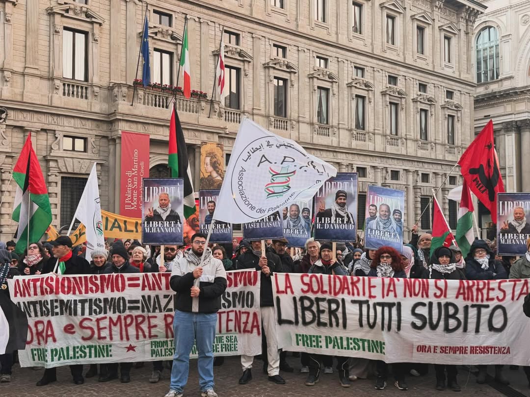 On Saturday, 3 January, protesters gathered in Piazza Scala in Milano with signs calling for the liberation of Hannoun, Dawoud, Yaser El-Assaly and their fellow Palestinian prisoners — both in Italy and in Palestine. Simultaneously, another protest was organized in Genova — Hannoun’s hometown in Italy — calling for their freedom; protests have also been organized in Brugherio, outside the Monza prison, and in Napoli.