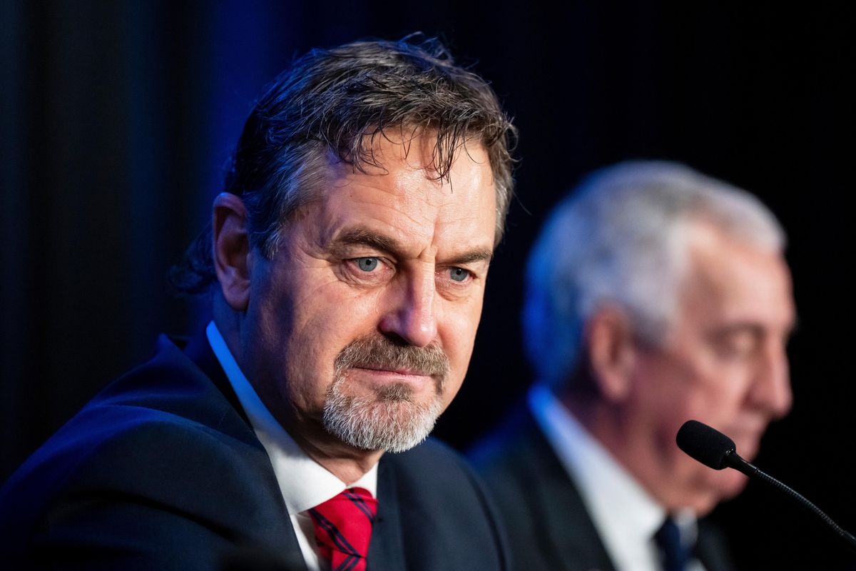 Viceprezident IIHF Petr Bříza na tiskové konferenci k závěru MS hokejistů do 20 let v Minnesotě.