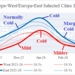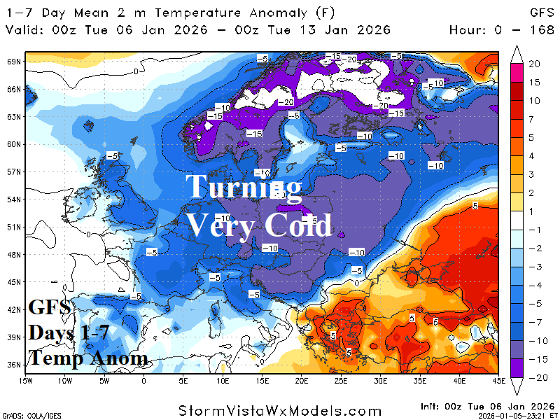 Highlight: Vigorous Europe/Western Russia Chill Ahead! Snow cover enhances cold. Southwest Russia chill arrives across bare ground.