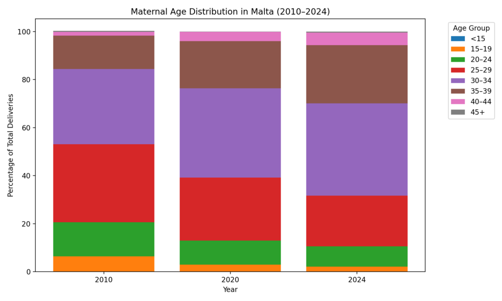 This decline in births among younger age groups mirrors broader demographic shifts in Malta, where natural population increase has slowed and the age structure of the population has tilted older.