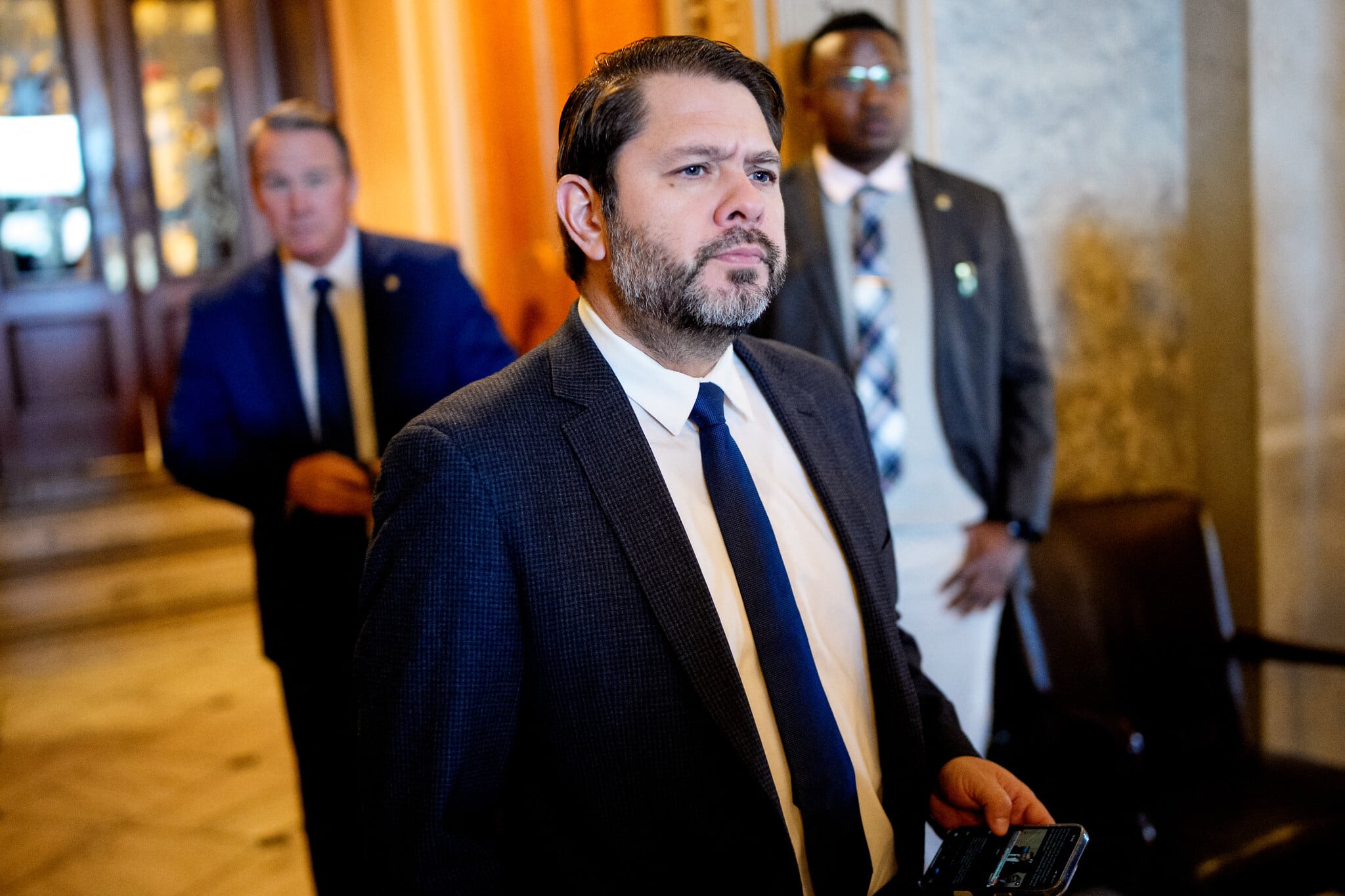US Senator Ruben Gallego walks out of the Senate Chamber on December 11, 2025 in Washington, DC. (Andrew Harnik / GETTY IMAGES NORTH AMERICA / Getty Images via AFP)