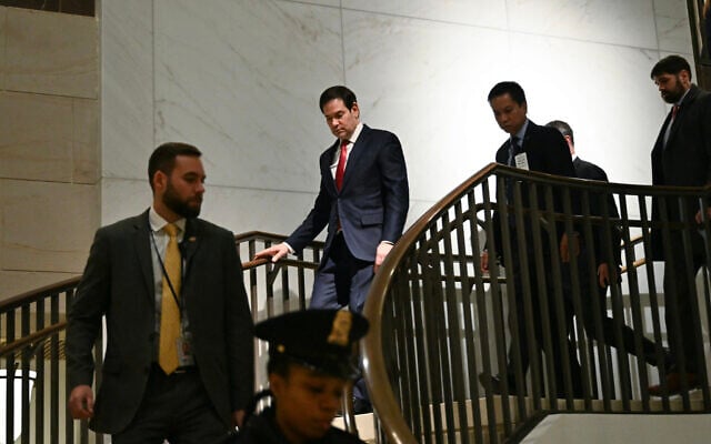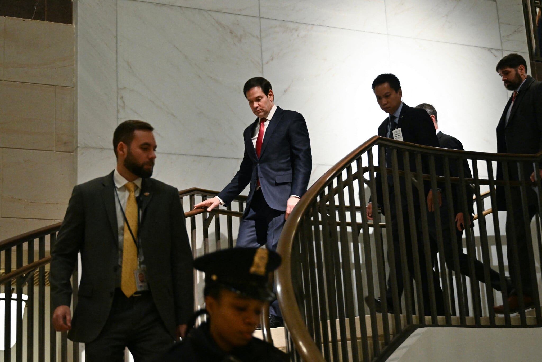 US Secretary of State Marco Rubio (C) arrives before meeting with lawmakers to discuss the recent US actions in Venezuela in Capitol Hill, Washington, DC on January 5, 2026. (Brendan SMIALOWSKI / AFP)
