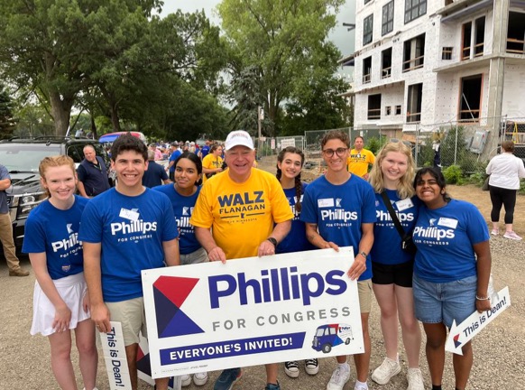Annika Lilja stands alongside Tim Walz and other campaign volunteers during an event in Minnesota. Lilja has been involved in campaign work since age 15 and continues to support voter outreach efforts. (Courtesy of Annika Lilja)