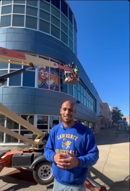 John Kinder, The Zone program director, is pictured in a screenshot from a recent Facebook Reel when the sign for the new attraction at the Northwest Arena was installed this fall.