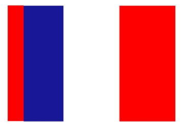 I often like darker colours but here the contrast between the blue, white and the red makes the Prussian blue look quite off. (Yes, it’s really dark blue, not black mike it looks like). It looks more like a sideways flag of the Weimar Republic than the French flag now.