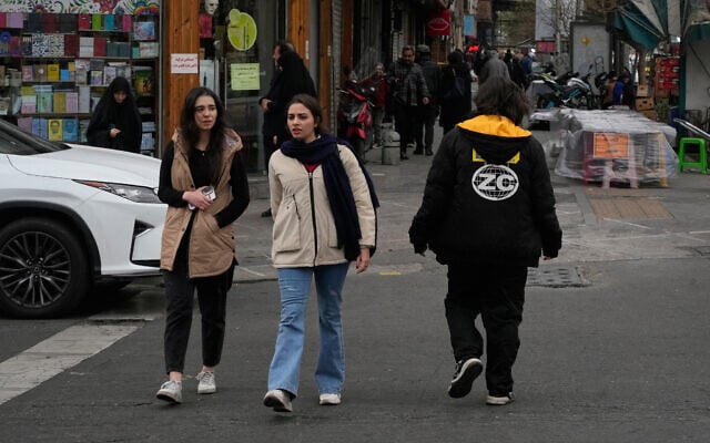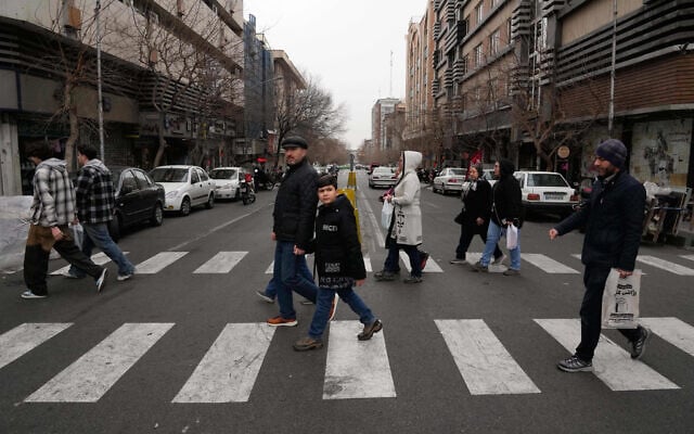 People cross an intersection in downtown Tehran, Iran, Thursday, Jan. 15, 2026. (AP Photo/Vahid Salemi)