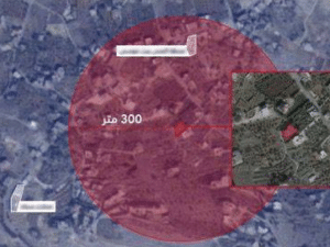 A map released by the occupation showed where the residents of the town of Sohmor, south of the Beqaa region of Lebanon, must evacuate in hopes of being safe from harm: