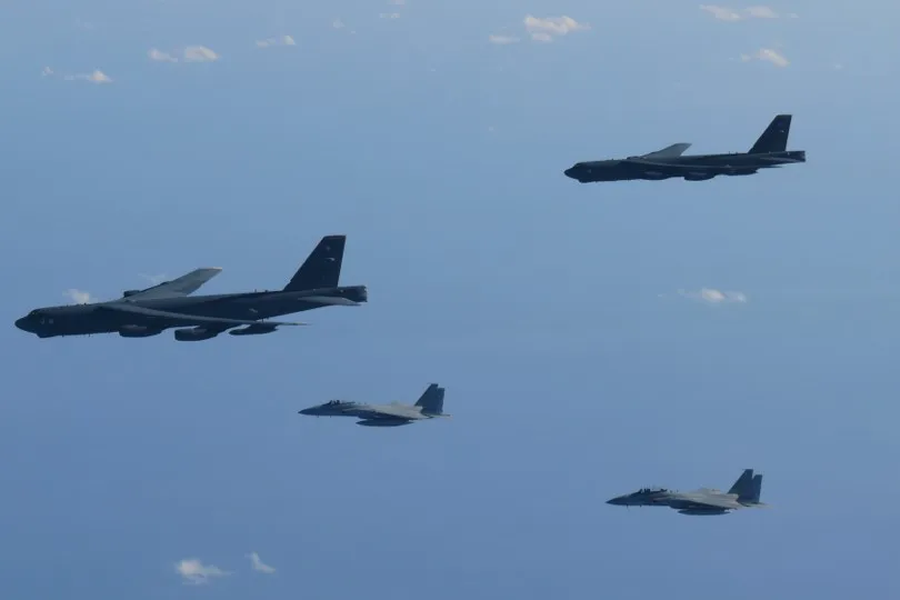 The JSDF & the US Armed Forces conducted a bilateral exercise over the Sea of Japan, demonstrating joint readiness and response capabilities. (©PACAF Twitter, December 11, 2025)