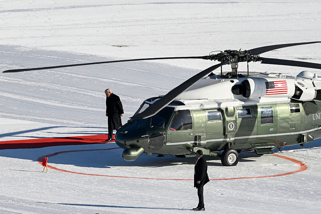 Trump steps off Marine One at Davos Landing Zone in Switzerland on Wednesday. (Ina Fassbender/AFP via Getty Images)