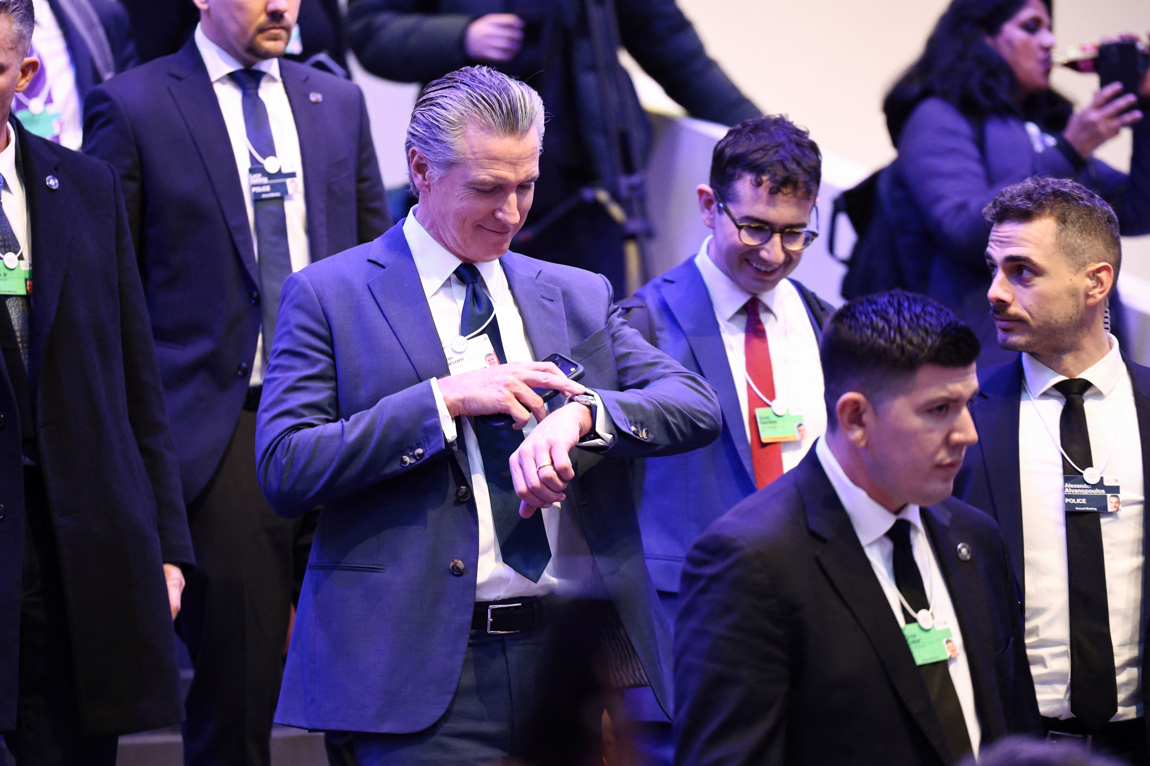 The governor of California, a frequent critic of Trump who is looking at a 2028 presidential run, was seen watching the president’s speech at Davos.