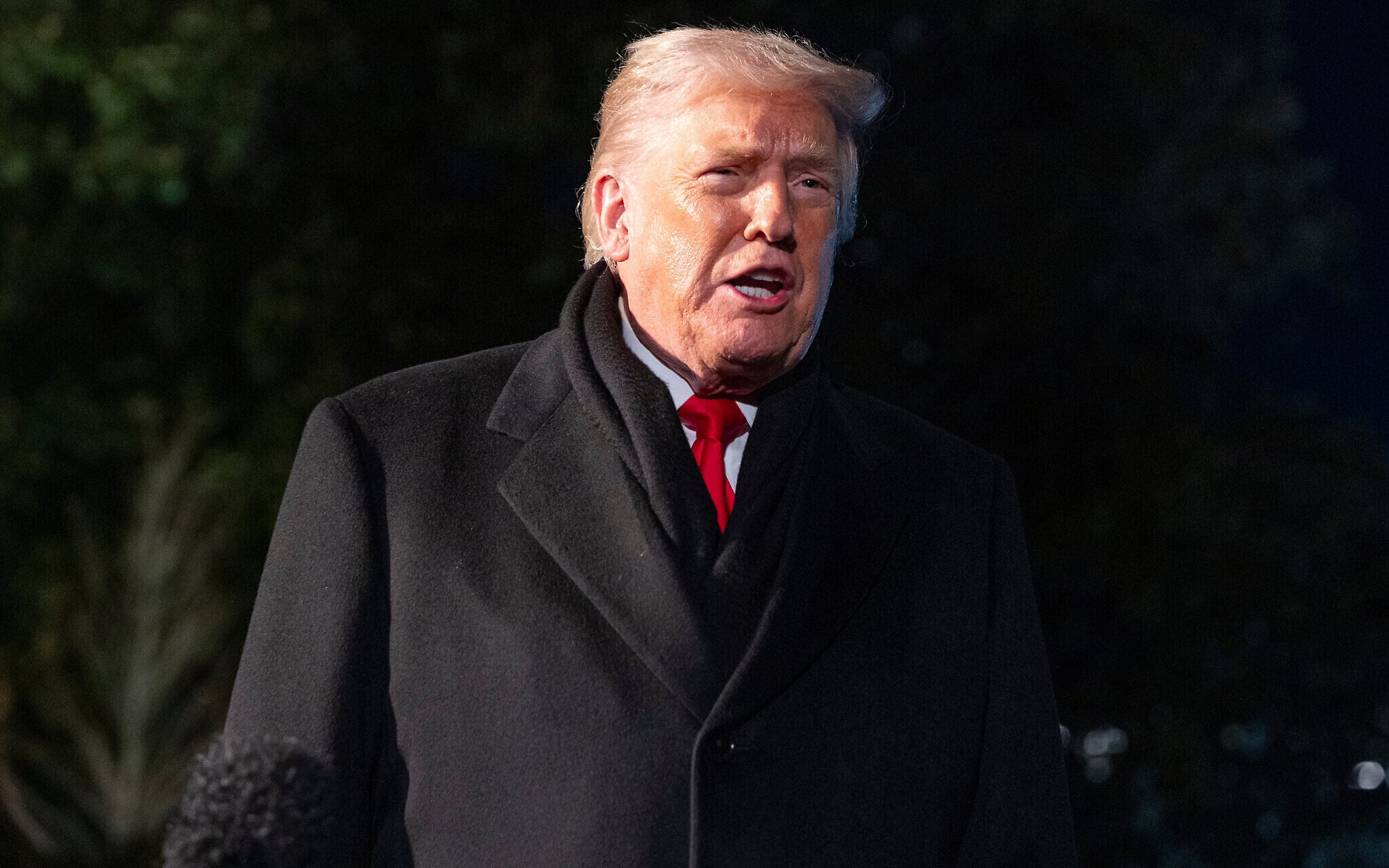 US President Donald Trump speaks before departing on Marine One from the South Lawn of the White House, Jan. 20, 2026, in Washington. (AP Photo/Alex Brandon)