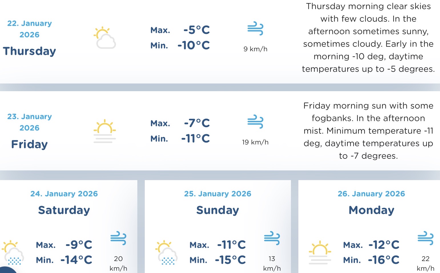 Weather forecast for the Matterhorn Paradise area for the next few days. | Image: Matterhorn Paradise