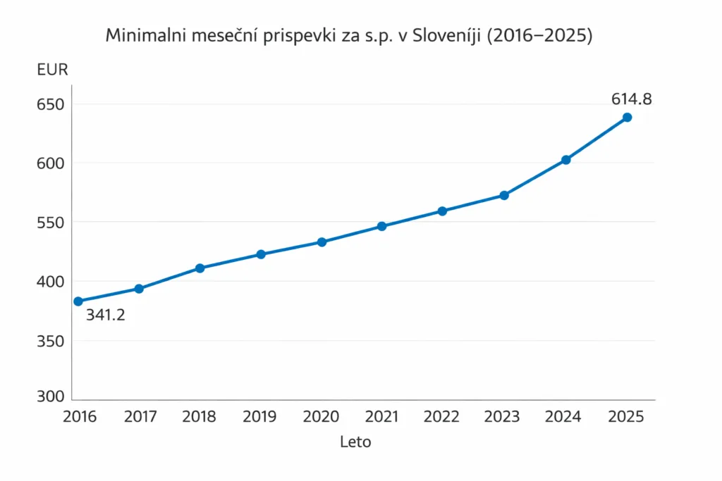 Da je stanje za marsikatero podjetnico (in seveda tudi podjetnika) na meji vzdržnega in da se mnogi počutijo kot molzne krave države, je dejstvo. V Sloveniji je bila država do podjetnika vedno mačehovska, zadnja leta pa je prav sovražna. Od 2016 do 2025 so se minimalni mesečni prispevki povečali za 273,61 EUR, kar je približno +80,2 % (s 341,20 EUR na 614,81 EUR). Če pa