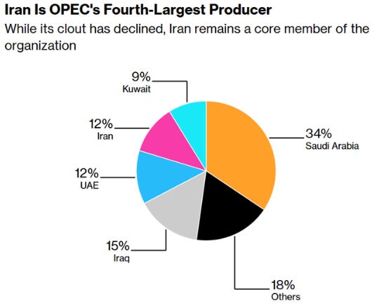 An escalation in unrest in Iran, which produces about 3.3 million barrels of oil per day, could have global energy implications. Iran provides about 1.3 million barrels a day to Chinese refineries. It ranks fourth among OPEC members, behind Saudi Arabia, Iraq, and the United Arab Emirates.
