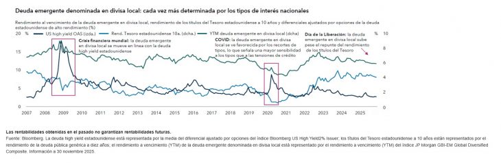 According to Capital Group, it is important to remember that emerging market debt denominated in local currency is increasingly determined by domestic interest rates, reflecting structural changes taking place in the composition of markets and policy frameworks. “The lower participation of foreign investors has reduced external influence, allowing the monetary policy of the respective countries to play a dominant role in price setting. This trend shift has been supported by monetary and fiscal credibility, the greater depth of capital markets, and the rise of institutional investment, which provides stable demand even in markets that previously relied heavily on foreign financing,” they explain.