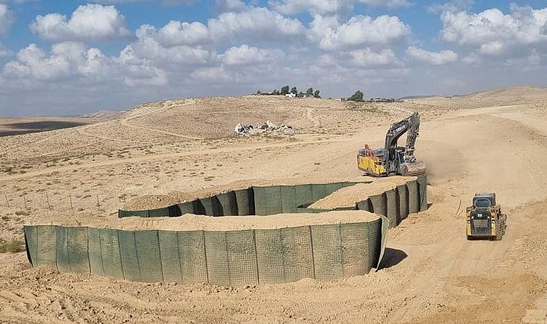 Temporary HESCO bomb shelters installed after October 7 in Al-Goran. Credit: NCF