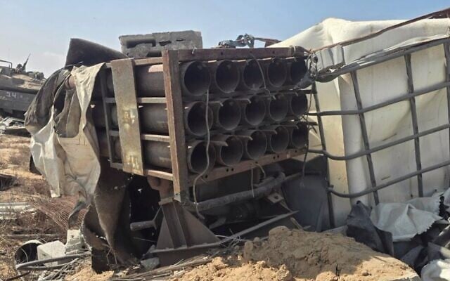 A rocket launcher found by troops in southern Gaza’s Rafah, in a handout photo issued on November 1, 2025. (Israel Defense Forces)