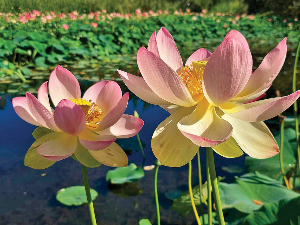 Summer lotus blossoms in the lake. (Credit: Adir Yogev)