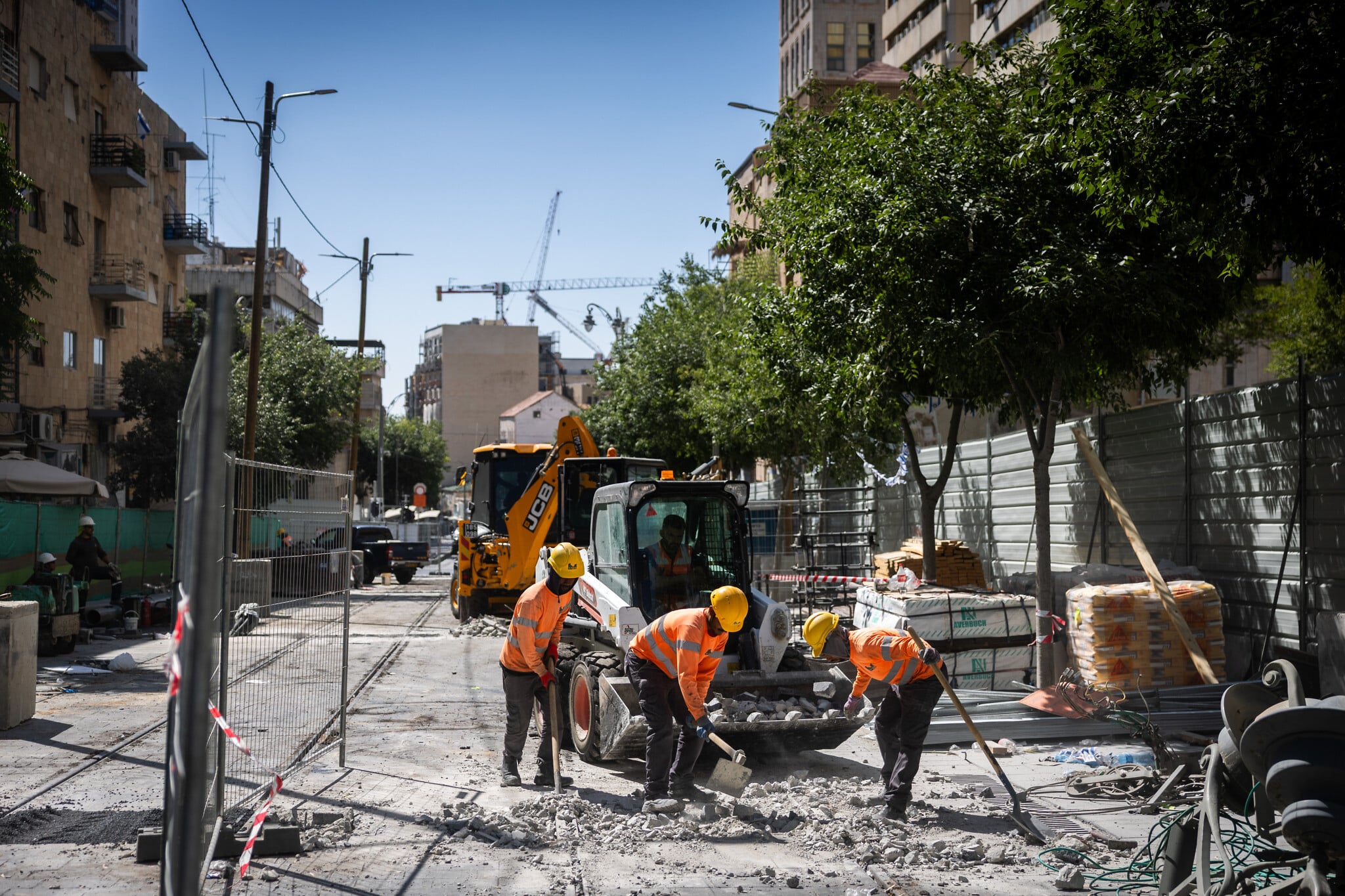 Work on the Jerusalem Light Rail in central Jerusalem, May 30, 2025. (Chaim Goldberg/Flash90)