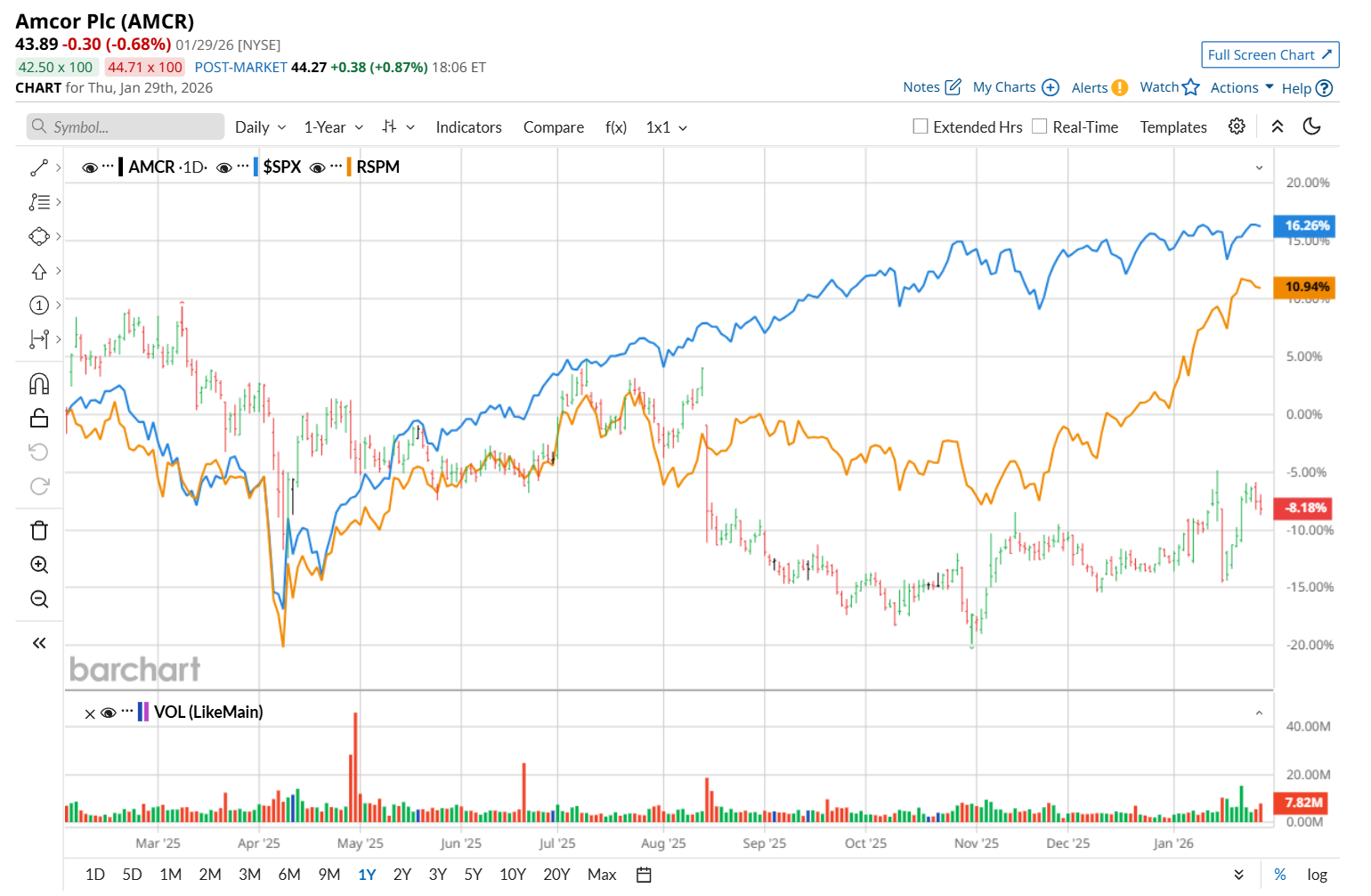 Narrowing the focus, AMCR has also trailed behind the Invesco S&P 500 Equal Weight Materials ETF (RSPM), which rose 9.8% over the past 52 weeks and 10.4% on a YTD basis.