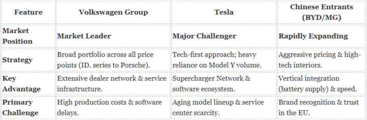 Volkswagen Group maintains the top spot, but it faces intense pressure from Tesla and a new wave of Chinese manufacturers.