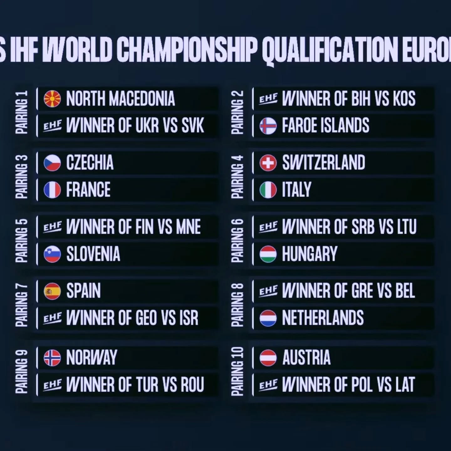 North Macedonia also received a favorable draw and will battle for a World Championship ticket against the winner of Ukraine vs Slovakia.