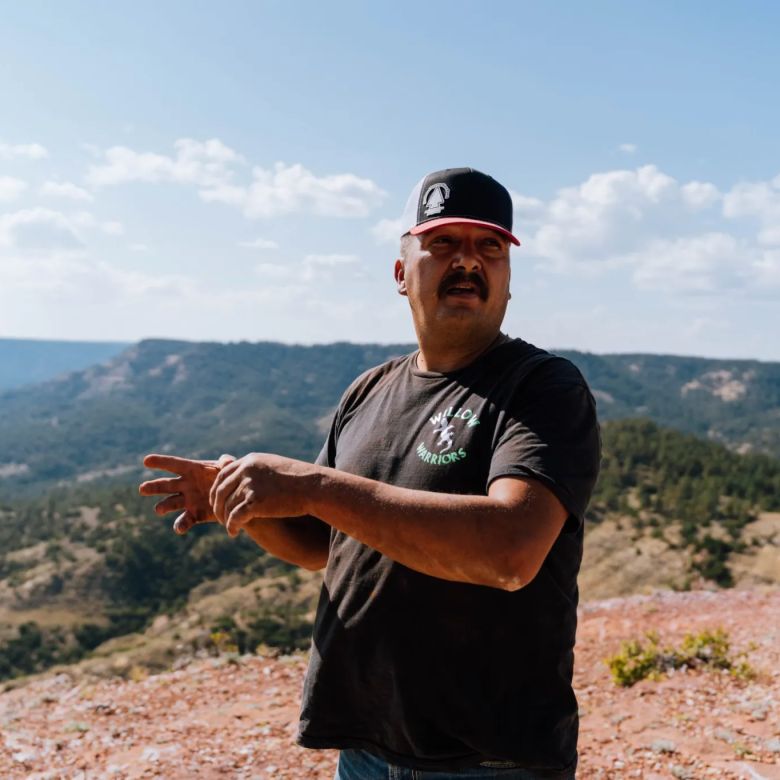 Brandon Small’s pickup squeezes down a narrow dirt road lined with trees and bushes as we drive down the hillside towards the buffalo. We’re on the Northern Cheyenne Reservation in southeastern Montana, a landscape full of yellow grasses and hillsides lined with small pine trees. Small runs the buffalo restoration program here on the Northern Cheyenne Reservation.