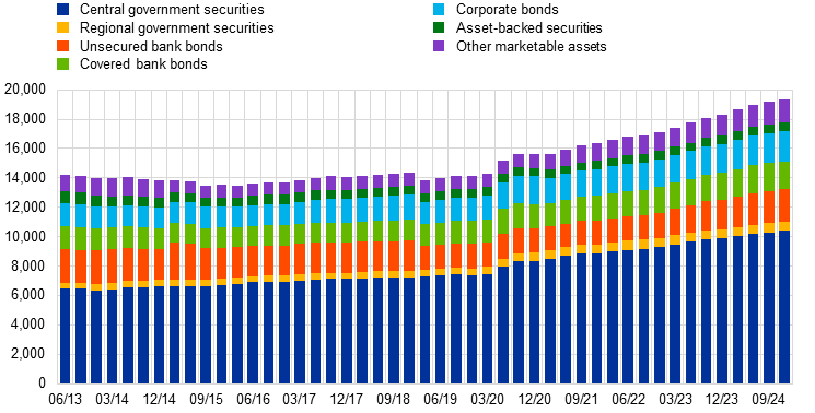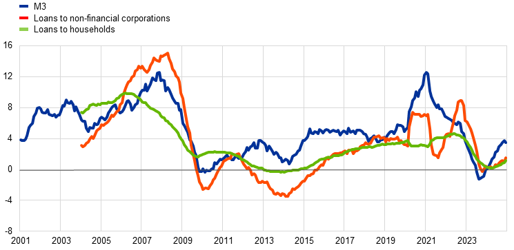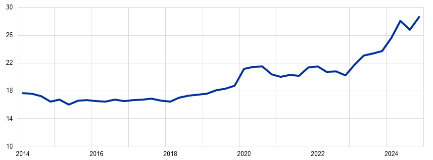 The Common Equity Tier 1 ratio of euro area banks remained close to its historical high, standing at 15.7% in the third quarter of 2024. This reflected strong bank profitability and a low level of non-performing loans.
