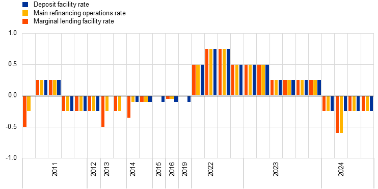 The ECB lowered the three key ECB interest rates, bringing the deposit facility rate to 3.00% by the end of the year