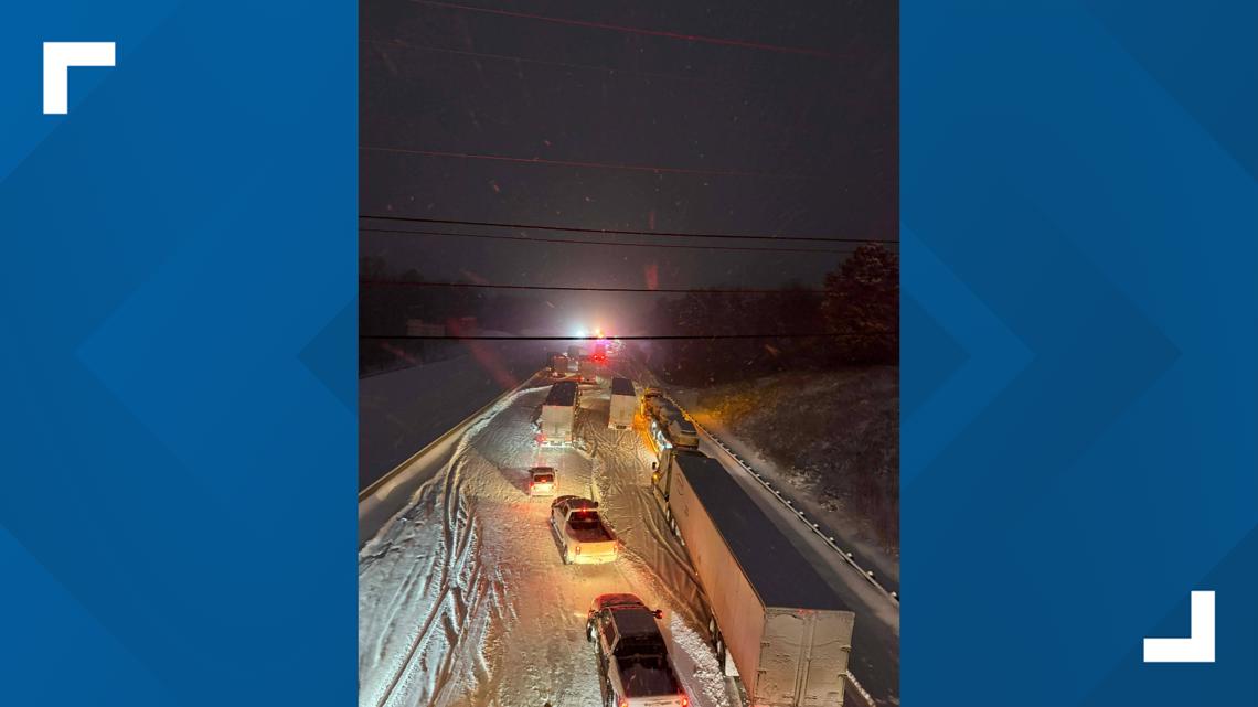 Over 30 tractor-trailers and more than 70 cars are now trapped on the highway, according to North Carolina state troopers.