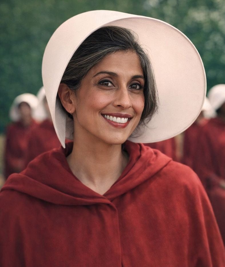 “What’s that about?” a female lawyer asked me. “It’s like she’s just officially signing up to be a handmaiden.” Another woman in my circle says Usha’s new pregnancy solidifies her status as a “Stepford heritage wife.”