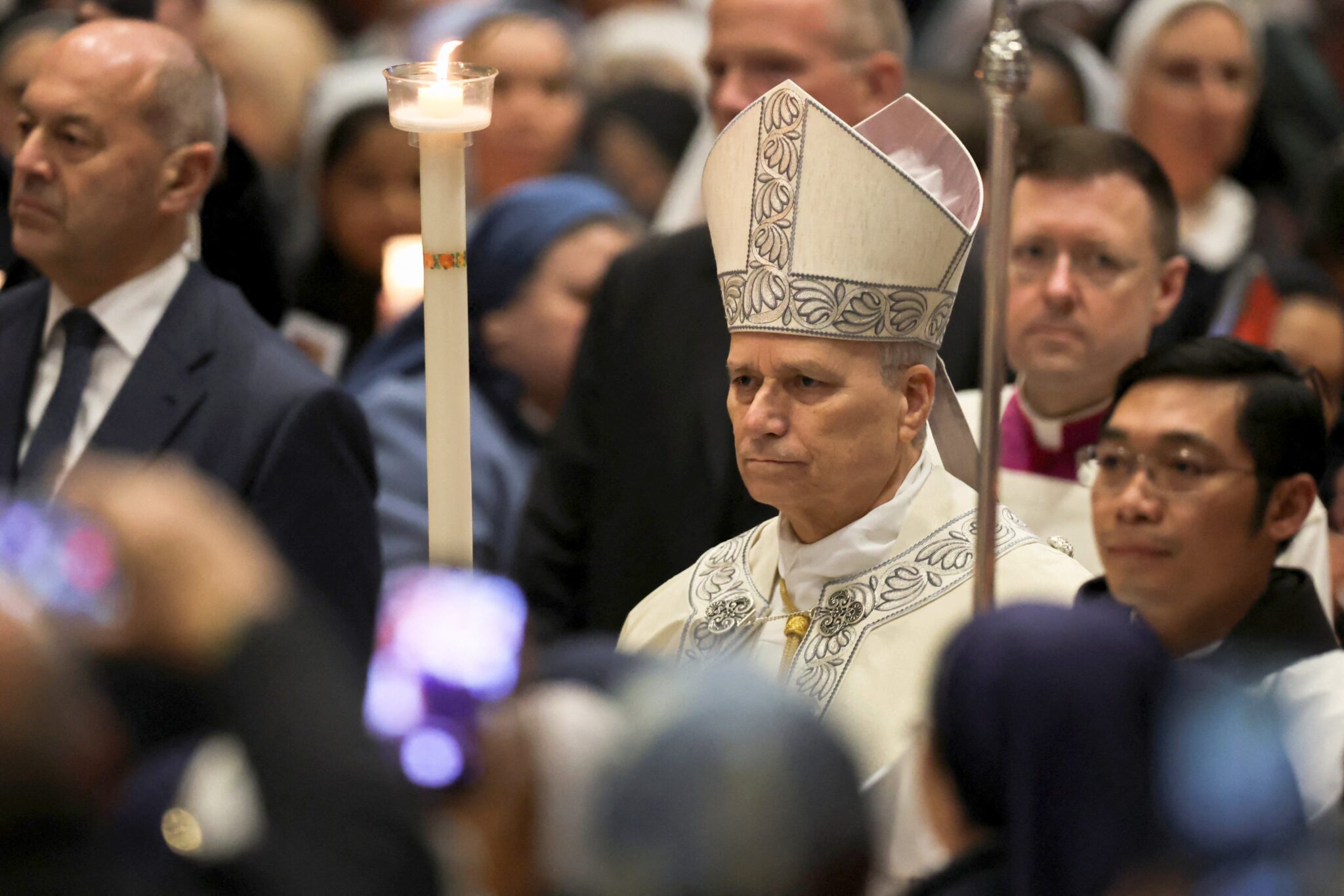 Pope Leo XIV arrives to celebrate Mass marking the feast of the Presentation of the Lord in St. Peter’s Basilica at the Vatican Feb. 2, 2026. The Mass also marked the Vatican celebration of the World Day for Consecrated Life. (OSV News photo/Vincenzo Livieri, Reuters)