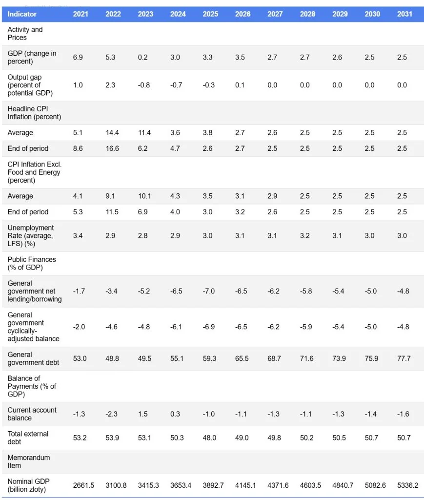 Poland’s near-term outlook is favorable, with growth projected to accelerate to 3.3 percent in 2025 and 3.5 percent in 2026, driven by a sharp increase in EU fund execution and monetary easing. Inflation has declined into the target range, and the output gap is expected to close in 2026. Nonetheless, risks remain elevated, including fiscal vulnerabilities, declining price competitiveness, global trade developments and regional security concerns. Staff assesses the external position in 2025 to be broadly in line with the levels implied by medium-term fundamentals and desirable policies. Over time, growth is expected to moderate as EU-financed investment wanes and fiscal consolidation continues.