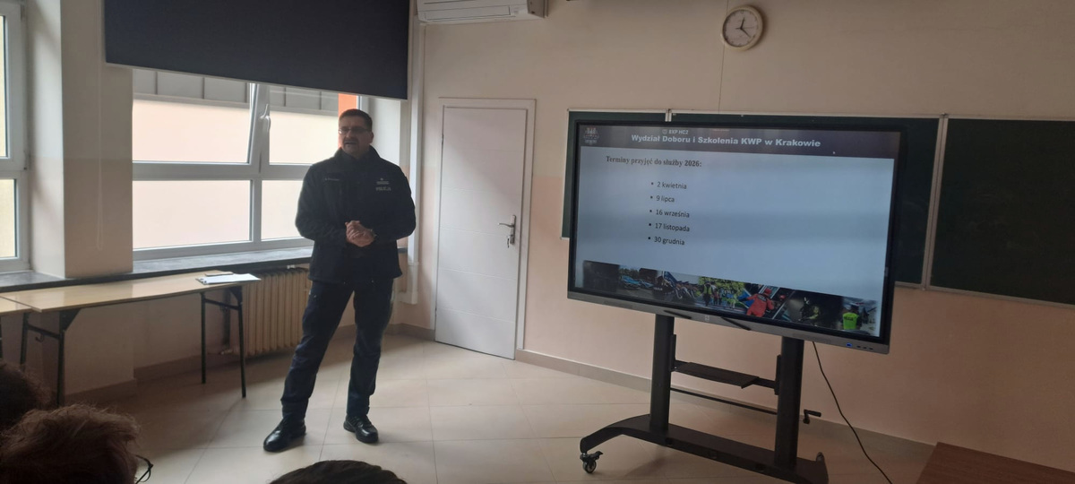 W ramach promocji zawodu policjanta, Zastępca Komendanta Miejskiego Policji w Krakowie podinspektor Leszek Zagórski, przeprowadził prelekcję w IX Liceum Ogólnokształcącym w Krakowie. Komendant w przystępny sposób przedstawił etapy rekrutacji i przybliżył specyfikę policyjnej służby.