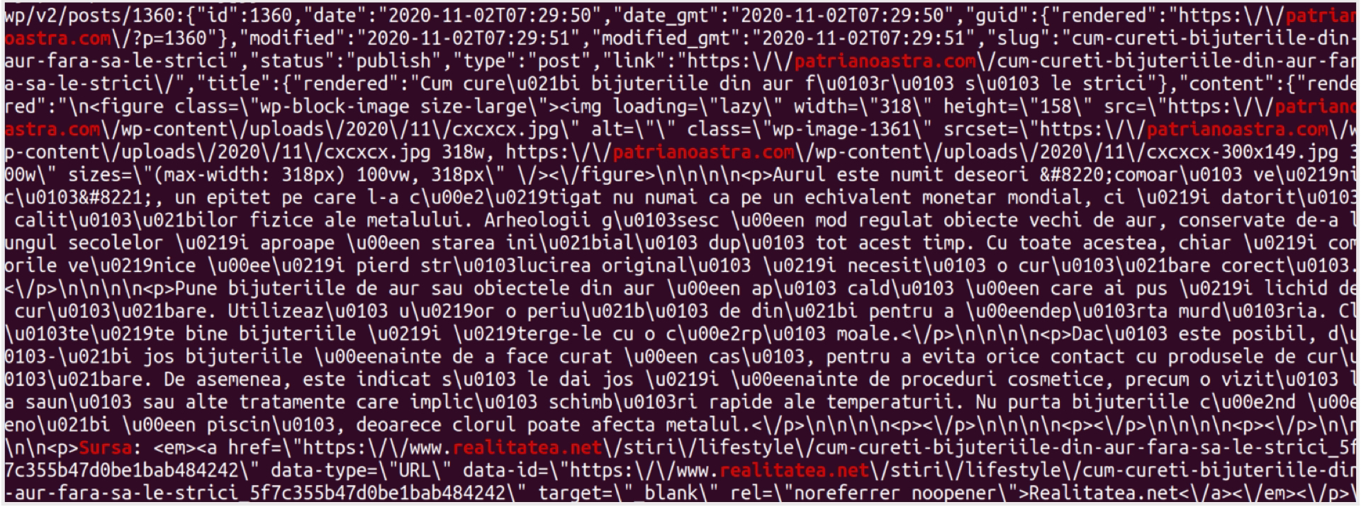 Quarium foloseste Ubuntu? pare terminalul de Ubuntu si un JSON dump https://images.pressone.ro/wp-content/uploads/2022/07/12224325/3_JSON-Dump-of-one-article-via-WordPress-API.jpeg