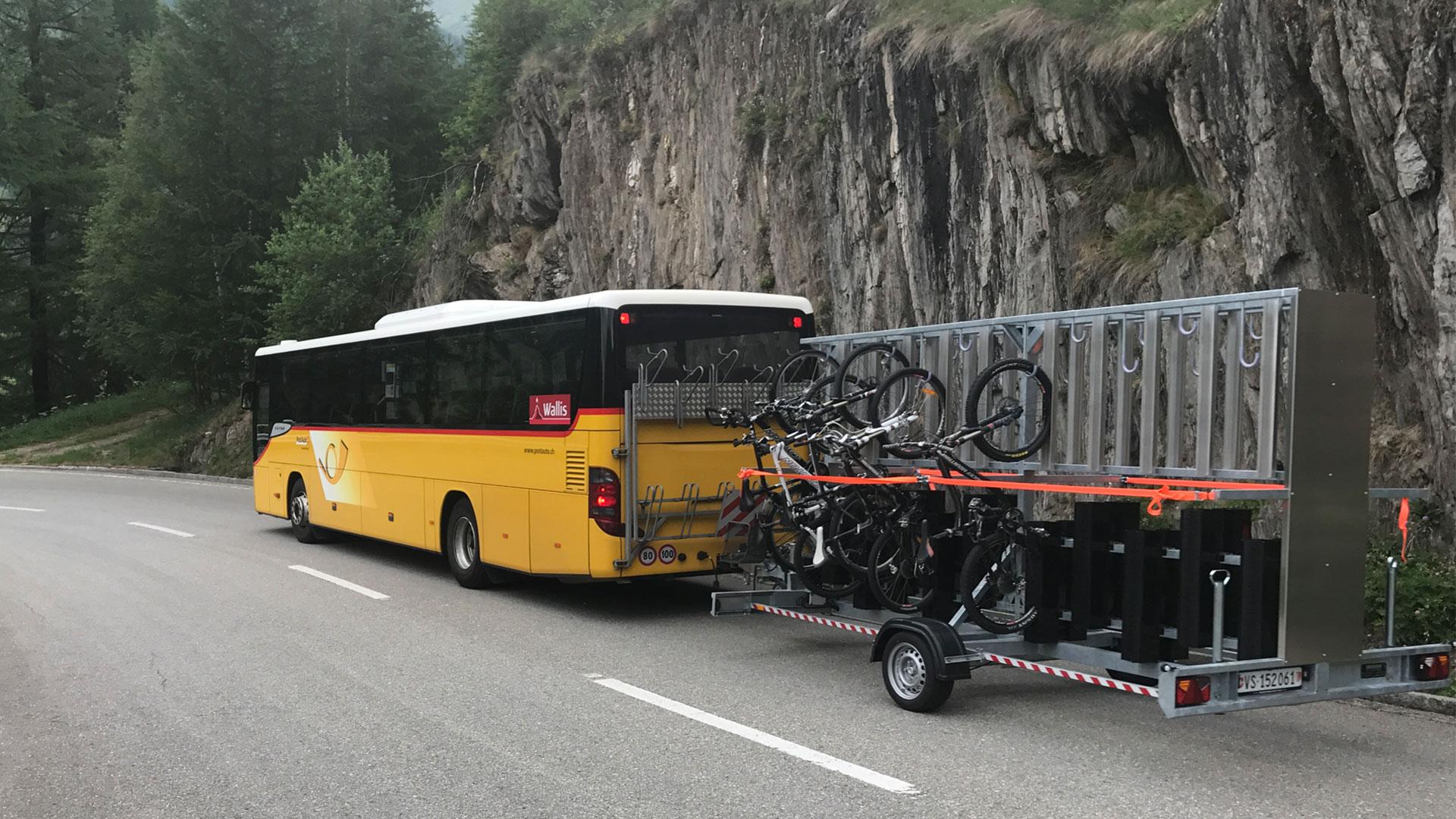 Il y a [la remorque](https://www.stibus.ch/stibus-media/img/galleries/fahrplaene/Bike-Shuttle/weblication/wThumbnails/Bike-Shuttle03-ba704d43-6c98ac18@1000w2x.webp) ou [comme ça](http://www.rro.ch/cms/img/oberwallis-postautos-mit-neuen-veloanhaengern-82800.jpg).