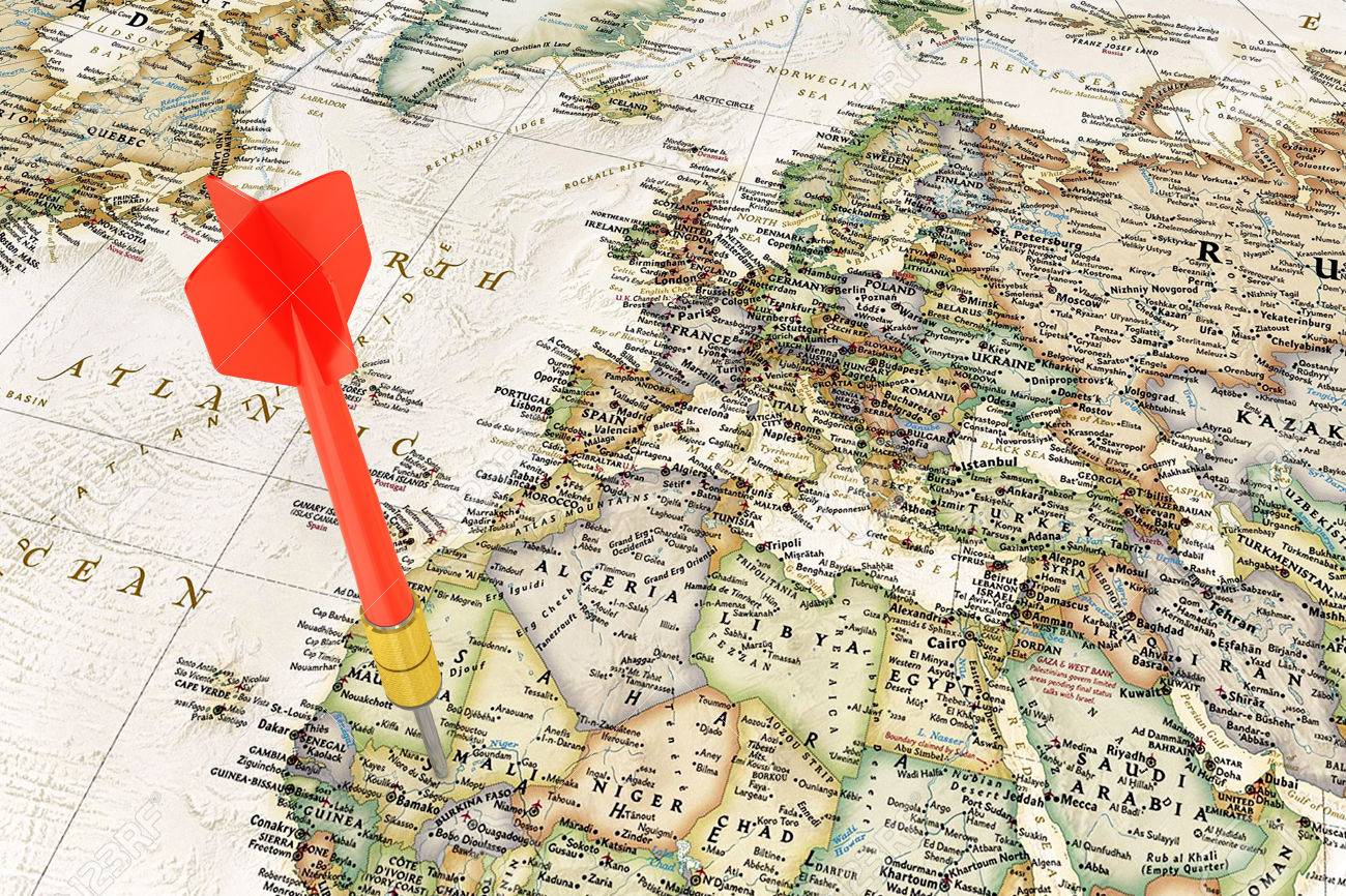 PostNord når de bestemmer hvor dagens levering skal hen: https://previews.123rf.com/images/urfingus/urfingus1507/urfingus150700147/42548997-red-darts-on-world-map.jpg
