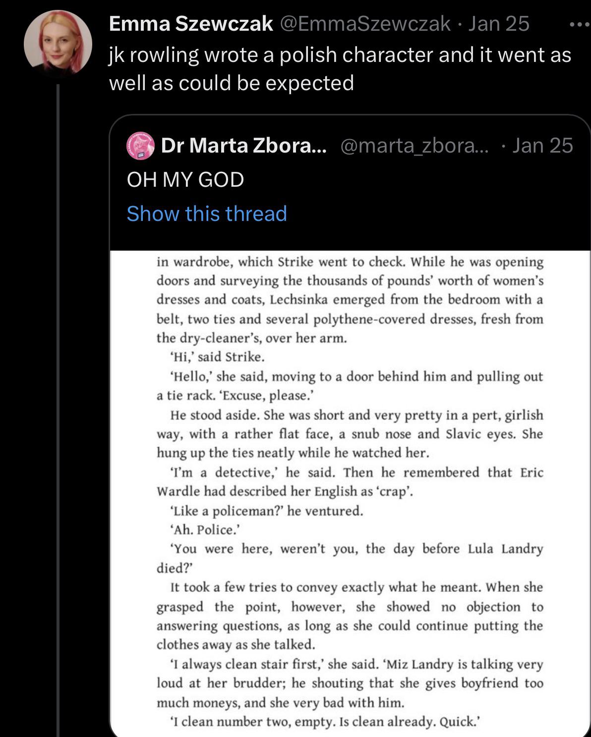 So, according to the complaints 🤔, Rowling can’t write properly regarding Polish names or features, her use of terminology to describe British features as she, the author, sees them go beyond being ridiculous.
