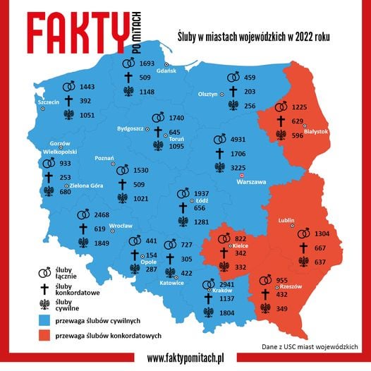 Dlaczego ogólna liczba ślubów w wielu miastach przewyższa łącznie śluby kościelne i cywilne?
